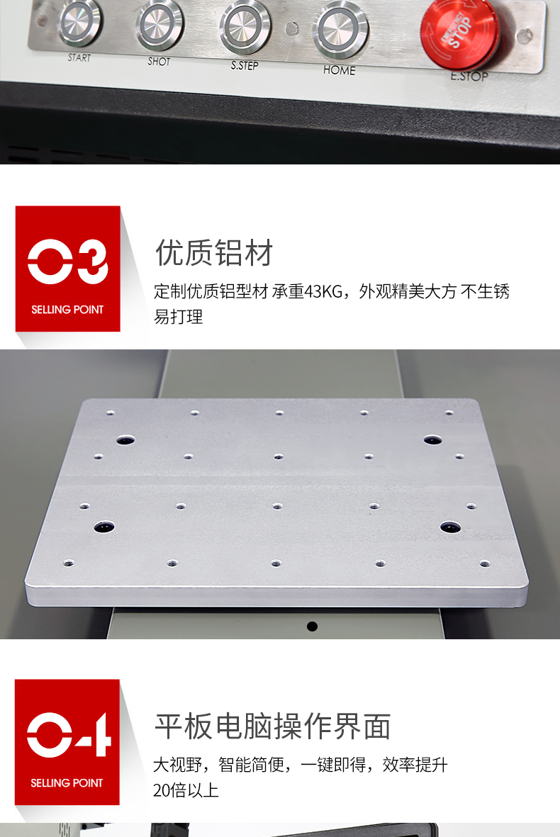 2.高精度三軸平臺(tái),采用精密絲桿+日本伺服電機(jī)驅(qū)動(dòng),保證設(shè)備的精度和穩(wěn)定性。