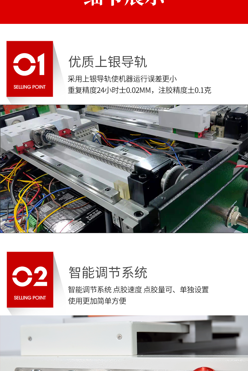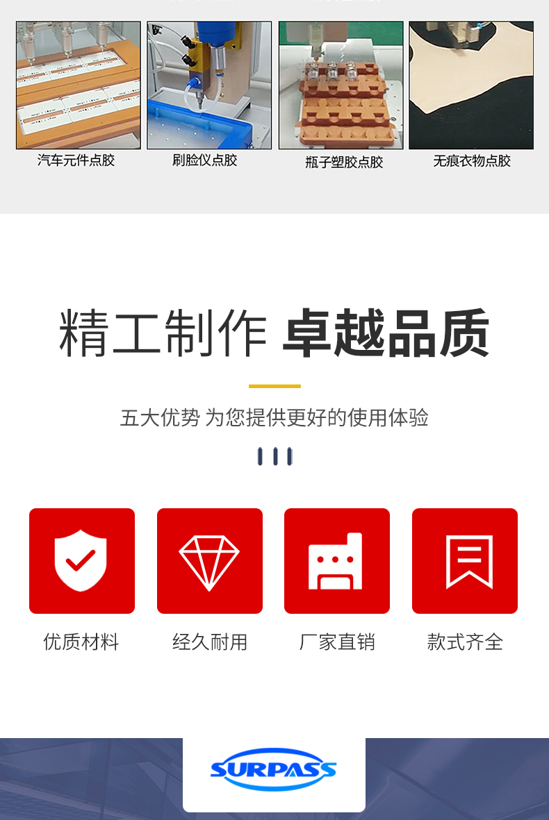 1.取代人工特點(diǎn)的點(diǎn)膠作業(yè),實(shí)現(xiàn)機(jī)械化生產(chǎn) 。
