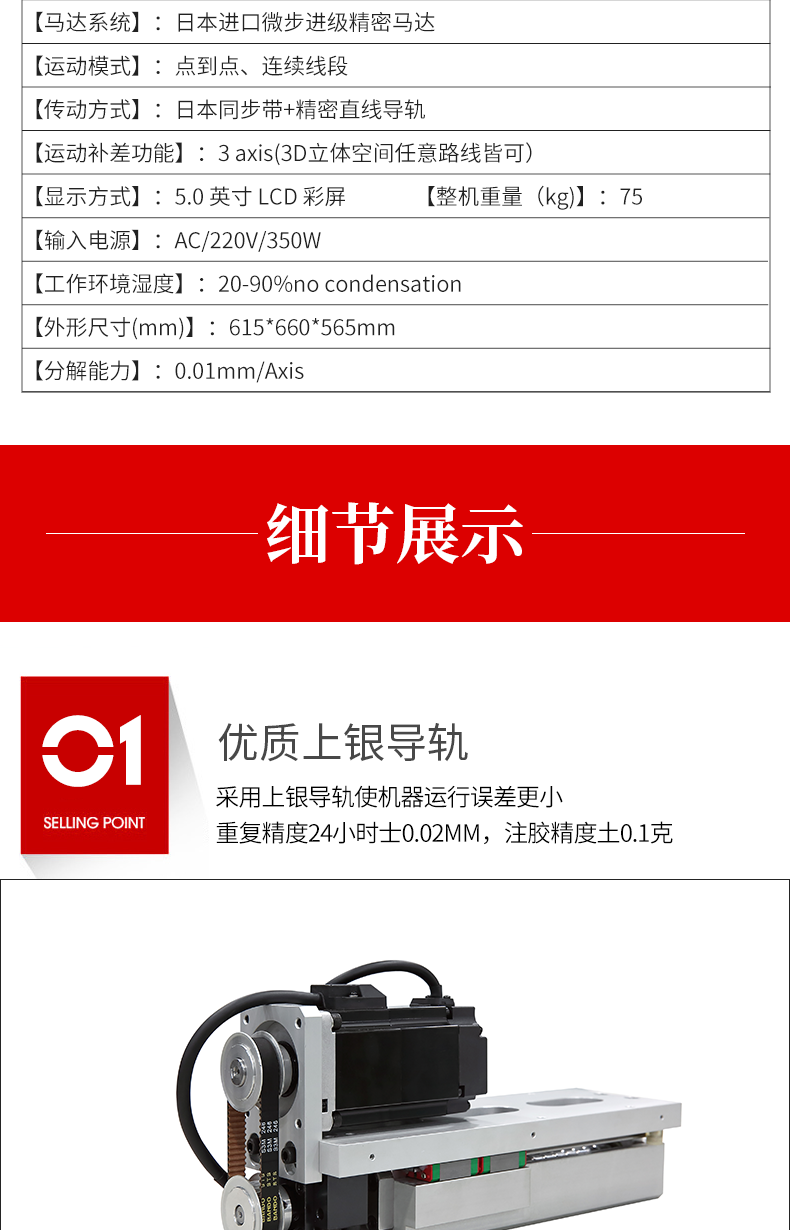 1. 可替代人工的特定點(diǎn)膠作業(yè),實(shí)現(xiàn)機(jī)械化生產(chǎn)。