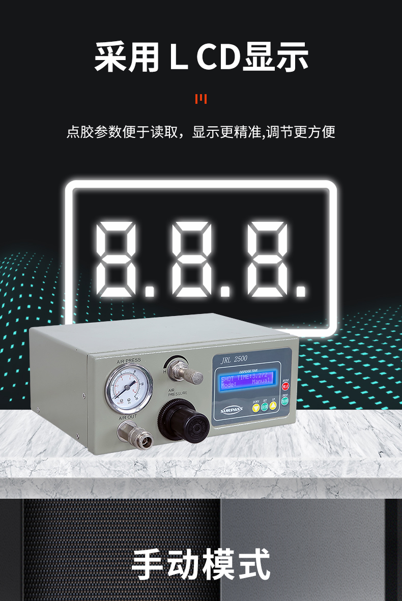 ●采用LCD顯示,點(diǎn)膠參數(shù)便于讀取,具有定時(shí)功能。