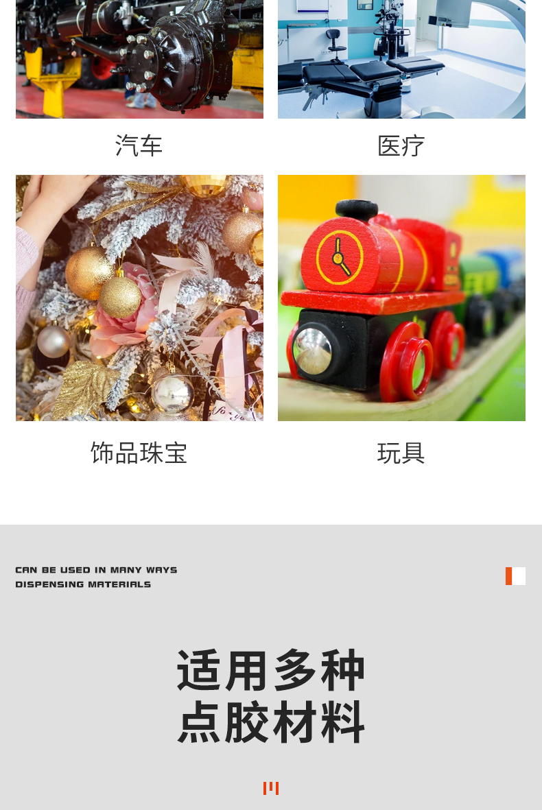 ☆粘接、封裝、涂層、密封、充填、點(diǎn)形涂布、線形涂布等。