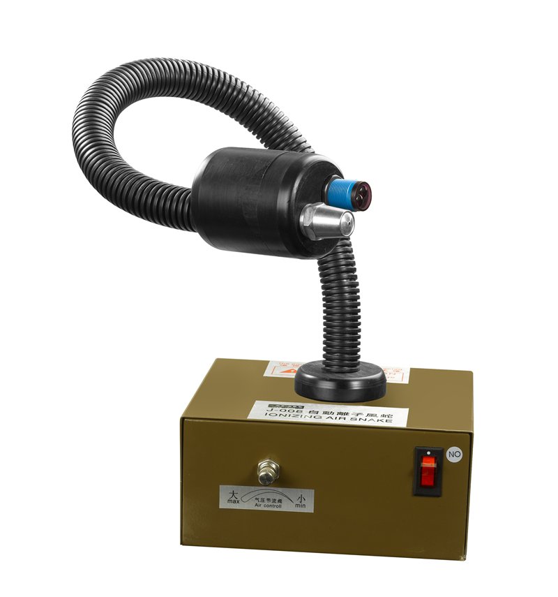 智能離子風(fēng)蛇是一種坐立式靜電消除器,可手動將蛇管變成風(fēng)蛇指向目標方向,讓離子氣流離子風(fēng)蛇可產(chǎn)生大量帶有正負電荷的氣團,被壓縮空氣高速吹出,可以將物體所帶的電荷中和掉,當(dāng)物體表面帶有正電荷時,它會吸入氣流中的負電荷,反之亦然。從而使物體表面的靜電被中和,從而消除靜電/高速壓縮氣還可以將物體上靜電吸引的灰塵吹走。